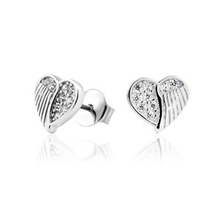 Srebrne kolczyki finezyjne serce ze skrzydłem