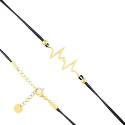 Bransoletka stal chirurgiczna krzyżyk okrągłe czarne kamyki pozłacany 18k złotem