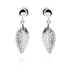 Srebrne eleganckie wiszące kolczyki piórka