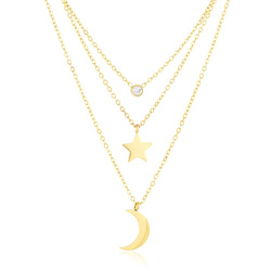 Naszyjnik stal chirurgiczna wielołańcuszkowy kryształek księżyc gwiazdka pozłacany 18k złotem