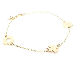 ( ilość produktów: 154 )Srebrna bransoletka serce koniczyna kółko ażurowe pozłacana 18k złotym