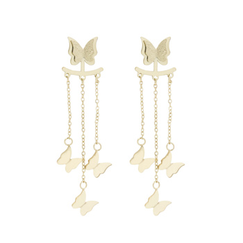 ( ilość produktów: 466 )Kolczyki wiszące duży motyl z mniejszymi motylkami stal chirurgiczna pozłacane 18k złotem
