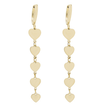 Kolczyki wiszące stal chirurgiczna trzy serduszka z cyrkonią pozłacane 18k złotem